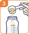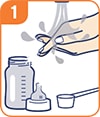 Aggiungere la giusta quantità di polvere all’acqua secondo le indicazioni del medico. Conservare il misurino asciutto nel barattolo.