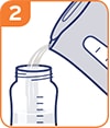 Chiudere il biberon, ruotarlo prima tra le mani e poi agitarlo vigorosamente fino a quando la polvere non si è completamente dissolta. In caso di utilizzo di una tazza mescolare fino allo scioglimento della polvere. Controllare la temperatura sulla parte interna del polso.